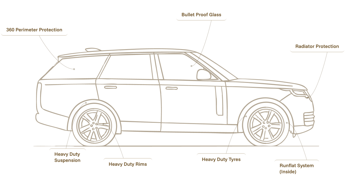Every vehicle in our luxury range blends uncompromising security with refined elegance. From advanced ballistic protection to seamlessly integrated safety systems, each feature safeguards occupants while preserving comfort, style, and performance.