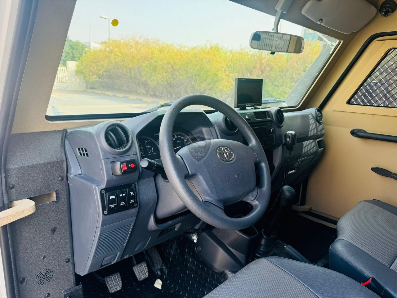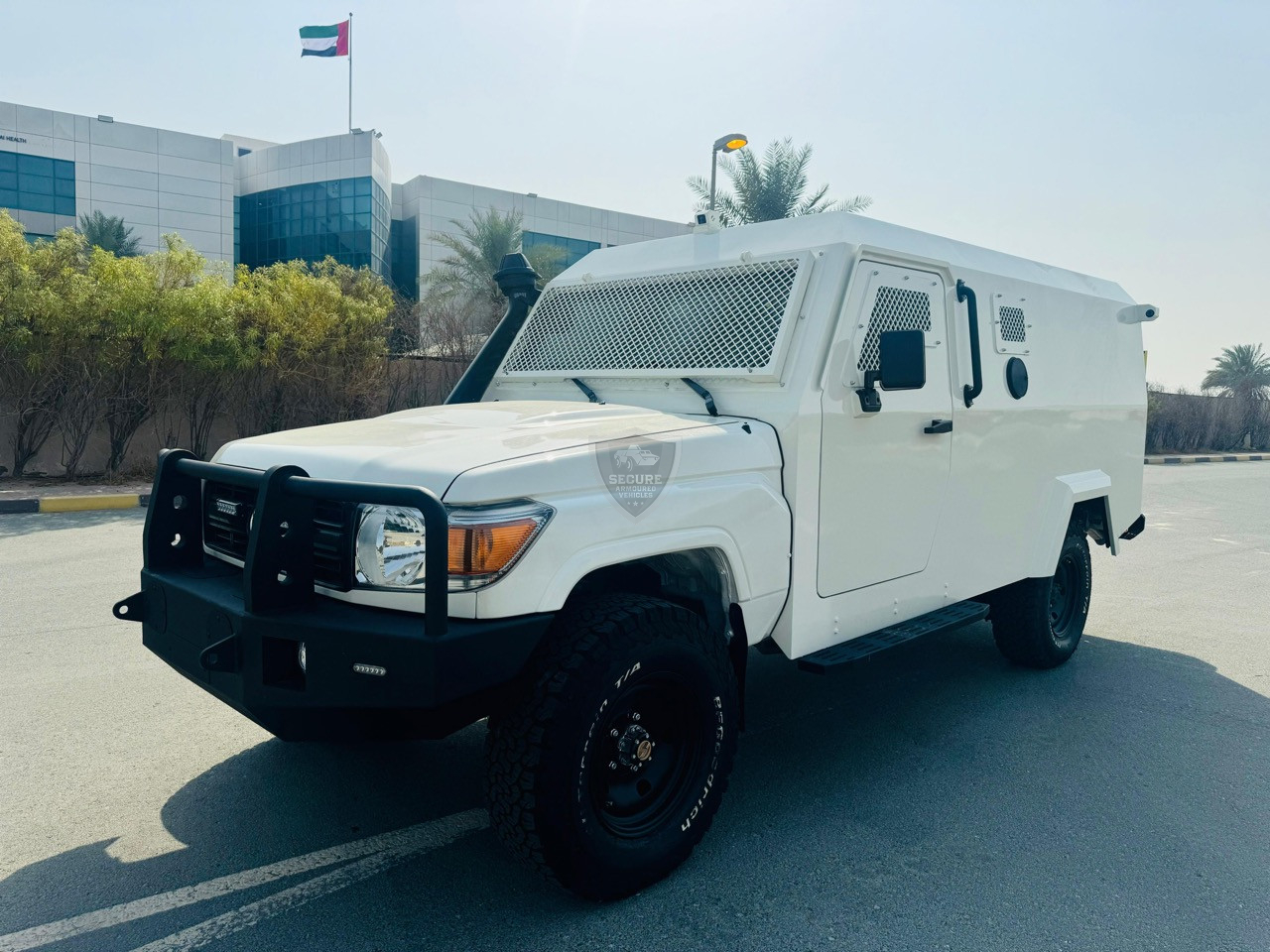 Welcome to the world of advanced security solutions with the Armored Toyota Land Cruiser 79 Single cabin CIT (Cash-in-Transit) vehicle. Designed as a versatile solution for various purposes including Cash Carriers, Bullion Carriers, ATM Carriers, Mobile Banks, or Parking Meter Collection vehicles, our Armored Toyota Land Cruiser 79 ensures a safe environment for banking services, even in rural areas. Built with high-level security in mind, the vehicle features bullet-resistant materials, providing defeat capability against handgun and shotgun attacks. In addition to physical protection, our vehicles can be equipped with sophisticated security features like biometric identification for vehicle entry and geofencing technology to alert if the vehicle strays beyond restricted boundaries. Experience peace of mind and efficiency during high-risk cash transport operations with the Armored Toyota Land Cruiser 79 Single cabin CIT.