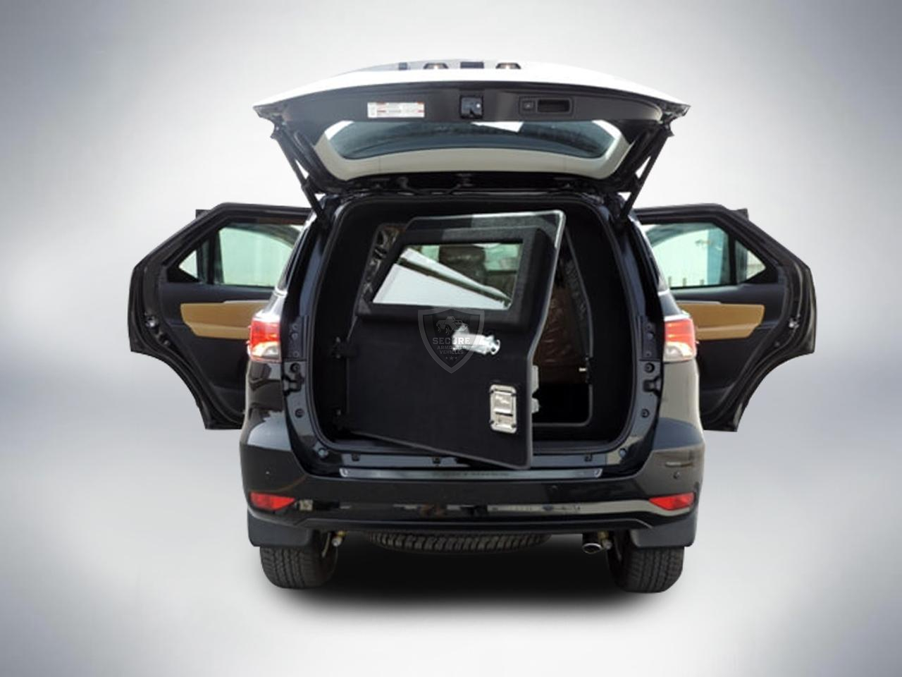 Introducing the Armored Toyota Fortuner, where ruggedness meets security. The Armored Toyota Fortuner combines robust capabilities with advanced safety features, offering a secure and luxurious experience on and off the road. Engineered to provide superior protection, it can be upgraded to achieve a higher level of armored security, surpassing CEN B6 / NIJ III standards. Our expertise in suspension, brake, and tire enhancements ensures that the Armored Toyota Fortuner maintains its comfort, handling, and performance—delivering a seamless driving experience for our discerning clients.